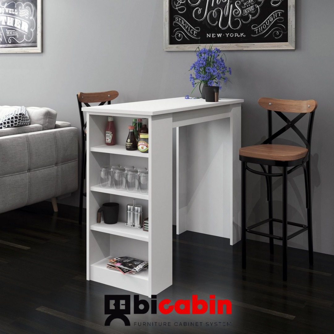 -Modern ve dikdörtgen formuyla dikka çeken Tekila Raflı Bar Masası, hem düzen ,hem de şıklık arayanlar için tasarlanmıştır.