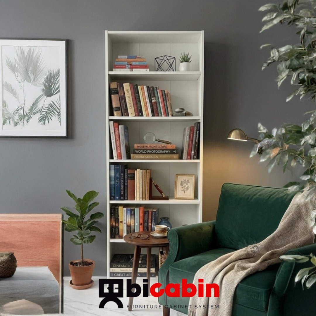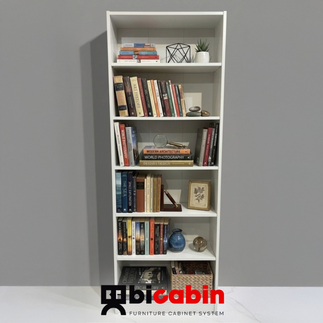 Modern ve sade tasarımıyla yaşam alanlarınıza şıklık katan Bicabin kitaplık, geniş raf yapısı sayesinde hem dekoratif hem fonksiyonel kullanım sunar.