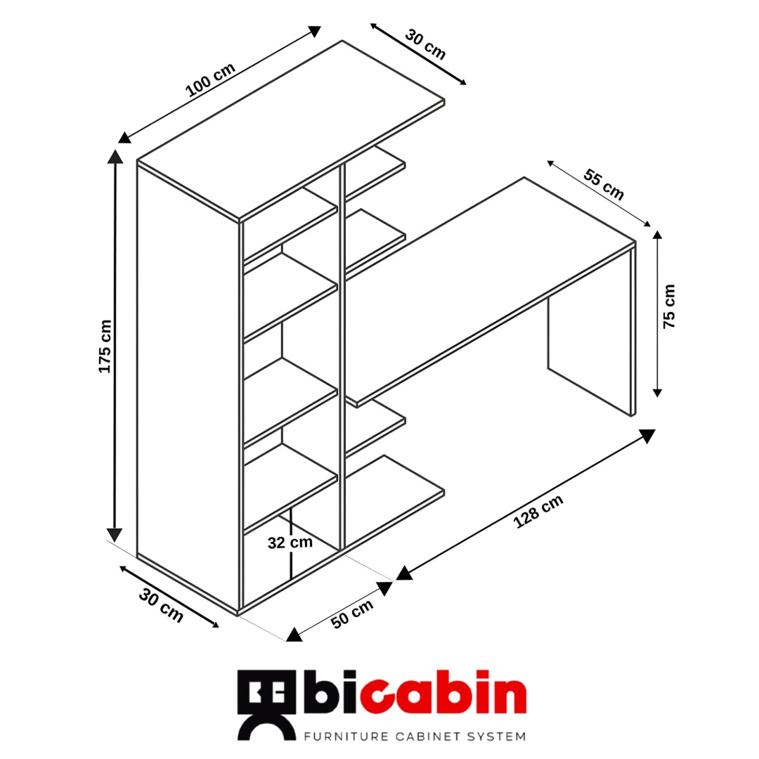 Masa Genişliği:128 cm · Masa Derinliği: 55 cm · Dolap Genişliği: 50 cm · Dolap Derinliği: 30 cm · Raf Genişliği: 30 cm · Raf Derinliği: 30 cm