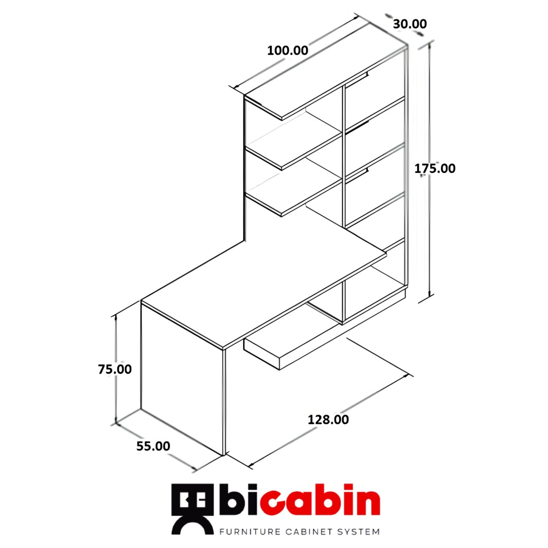 Masa Genişliği:128 cm · Masa Derinliği: 55 cm · Dolap Genişliği: 50 cm · Dolap Derinliği: 30 cm · Raf Genişliği: 30 cm · Raf Derinliği: 30 cm