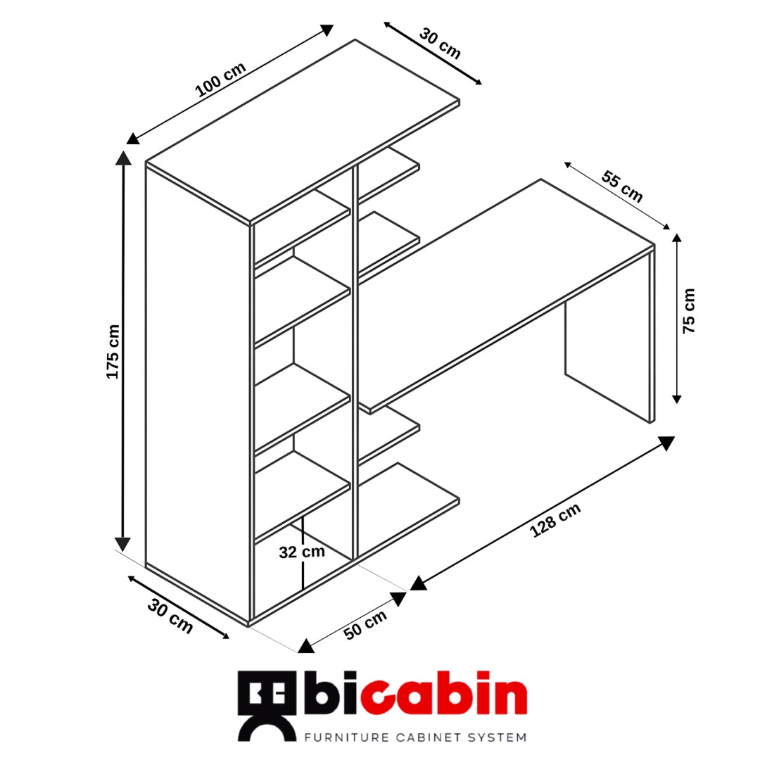 Masa Genişliği:128 cm · Masa Derinliği: 55 cm · Dolap Genişliği: 50 cm · Dolap Derinliği: 30 cm · Raf Genişliği: 30 cm · Raf Derinliği: 30 cm