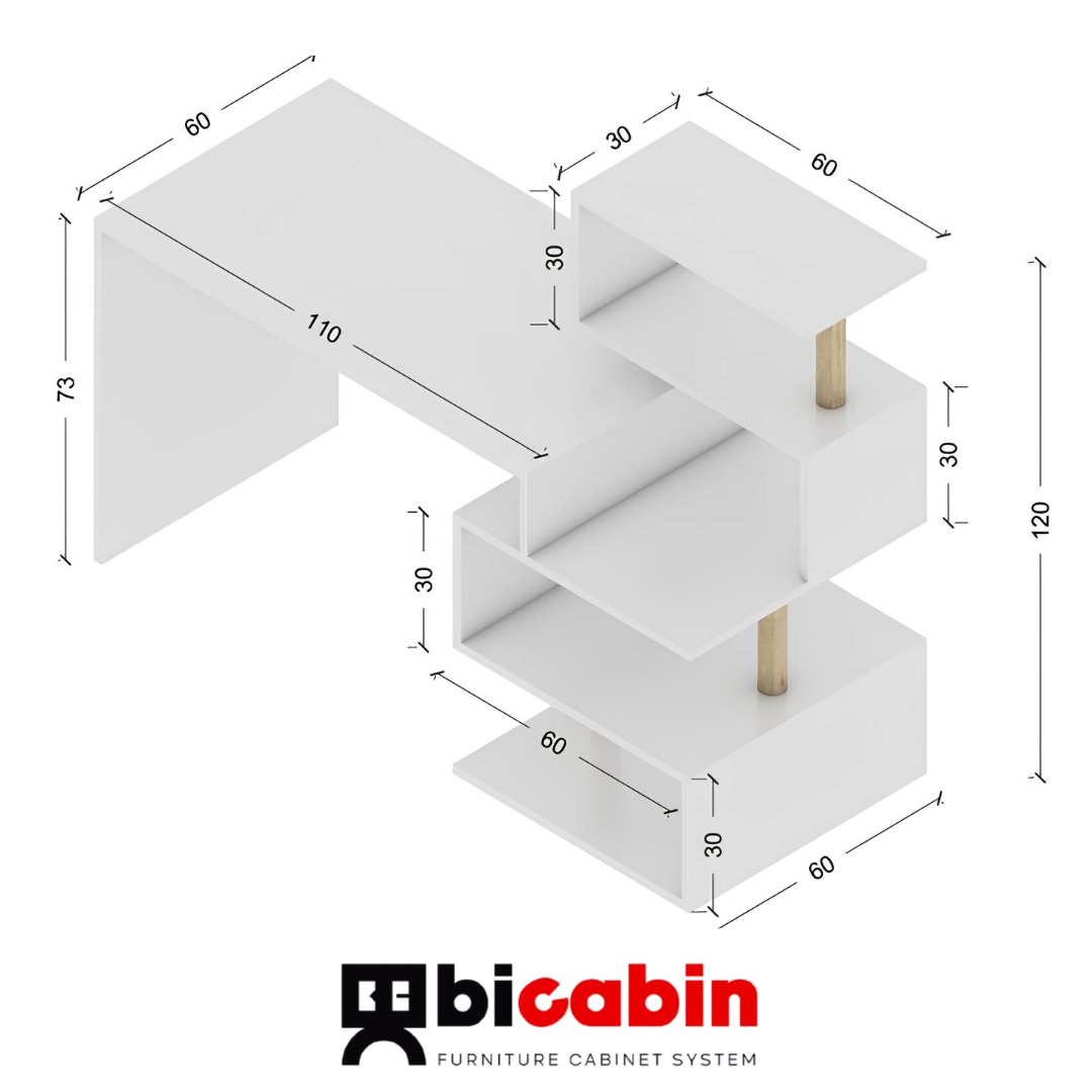 - Ölçüler: Yükseklik:73 cm, Derinlik:60 cm, Genişlik:110 cm ; Raf yükseklikleri: 30 cm, Genişlikleri: 60 cm Derinlikleri: Üst raflar: 30 cm / Alt raflar: 60 cm